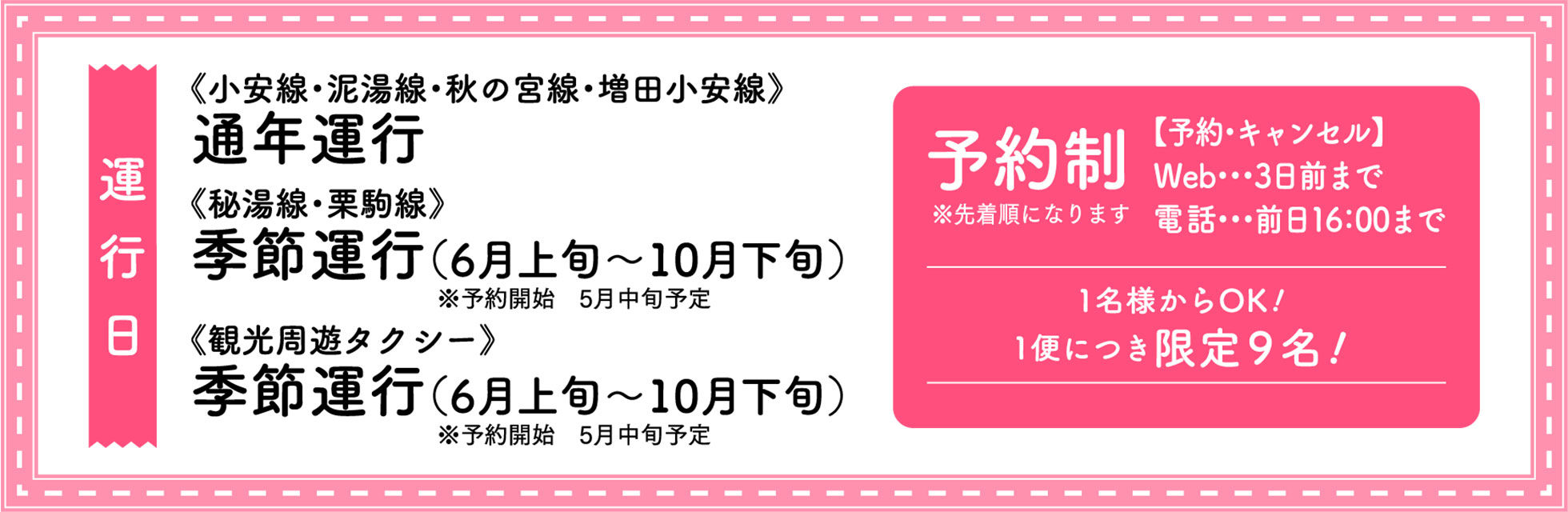 個人情報は、サービス遂行のため車両運行会社に伝達することをあらかじめご了承ください。