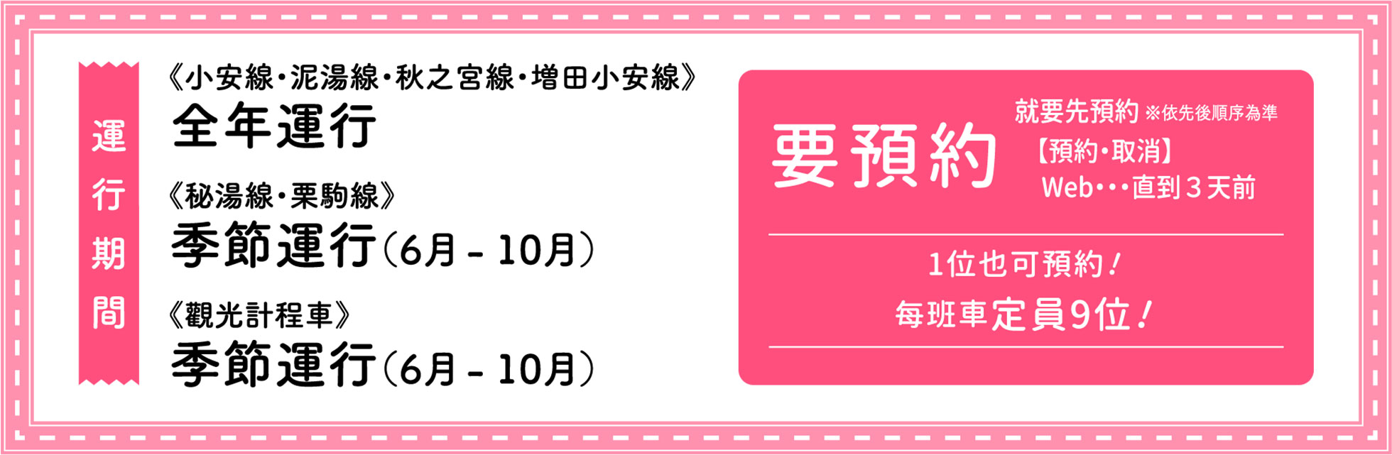 由於縣道310號線因施工而完全封閉,2026年【秘溫泉線】河原毛地獄~秋之宮之間的運作將暫停。